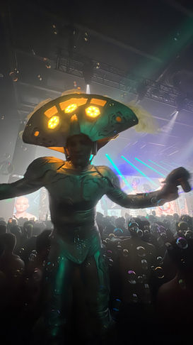 Take your event to another galaxy with the Spaceman. Clad in a head-to-toe metallic silver suit with sculptural armor plating and a geometric fan headpiece, this sky-high performer captures the imagination. Armed with handheld bubble guns, he engages guests with a fun, interactive display that perfectly complements futuristic themes, block parties, and daytime celebrations.