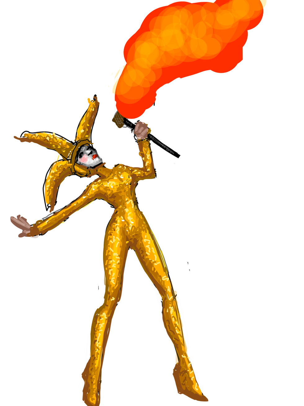 Custom Rental Creation: Gold bodysuit and headpiece.